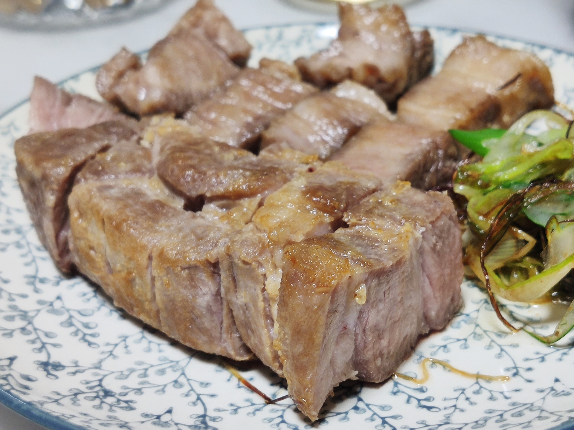 온도가 조금 더 낮거나 시간을 조금 덜 투자했다면 약간 더 물컹해서 덜 익은 고기가 나왔겠네요.