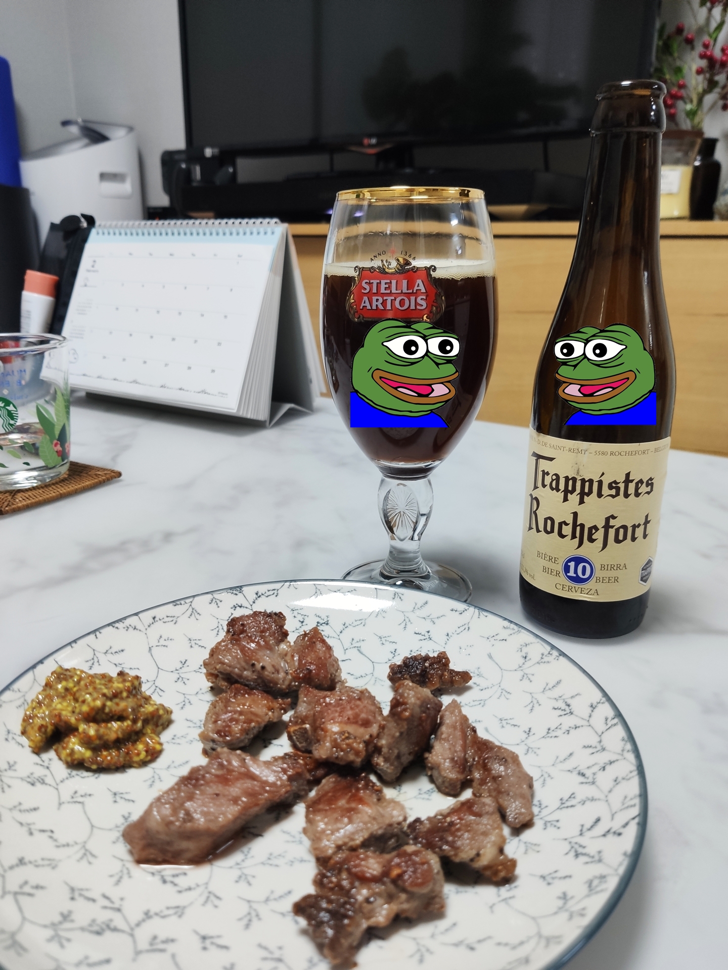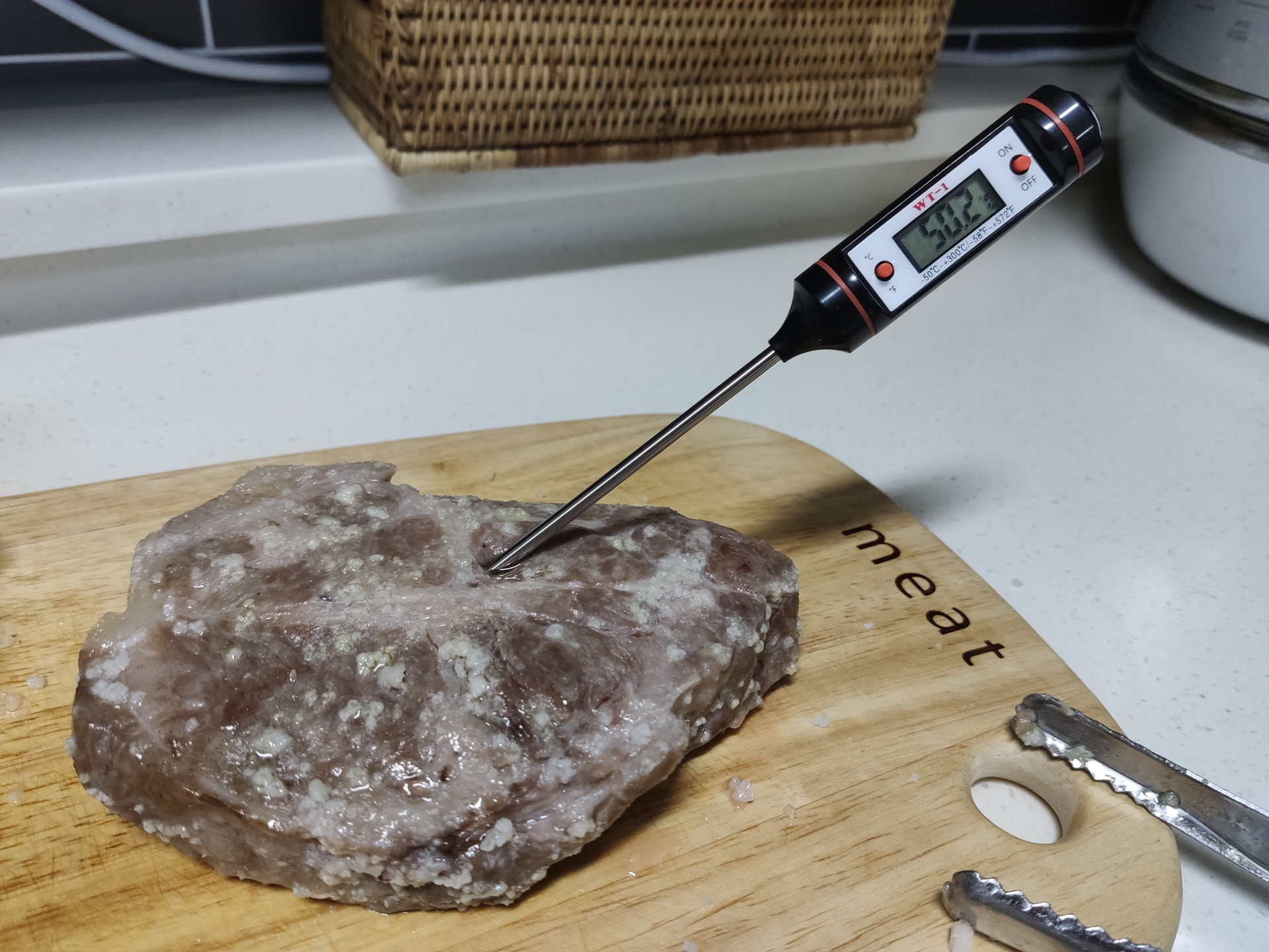 고기를 좀 많이 구웠더니 이제 온도계가 필요할 것 같아서 하나 장만해서 꽂아보았는데 좀 그럴싸하지 않나요?