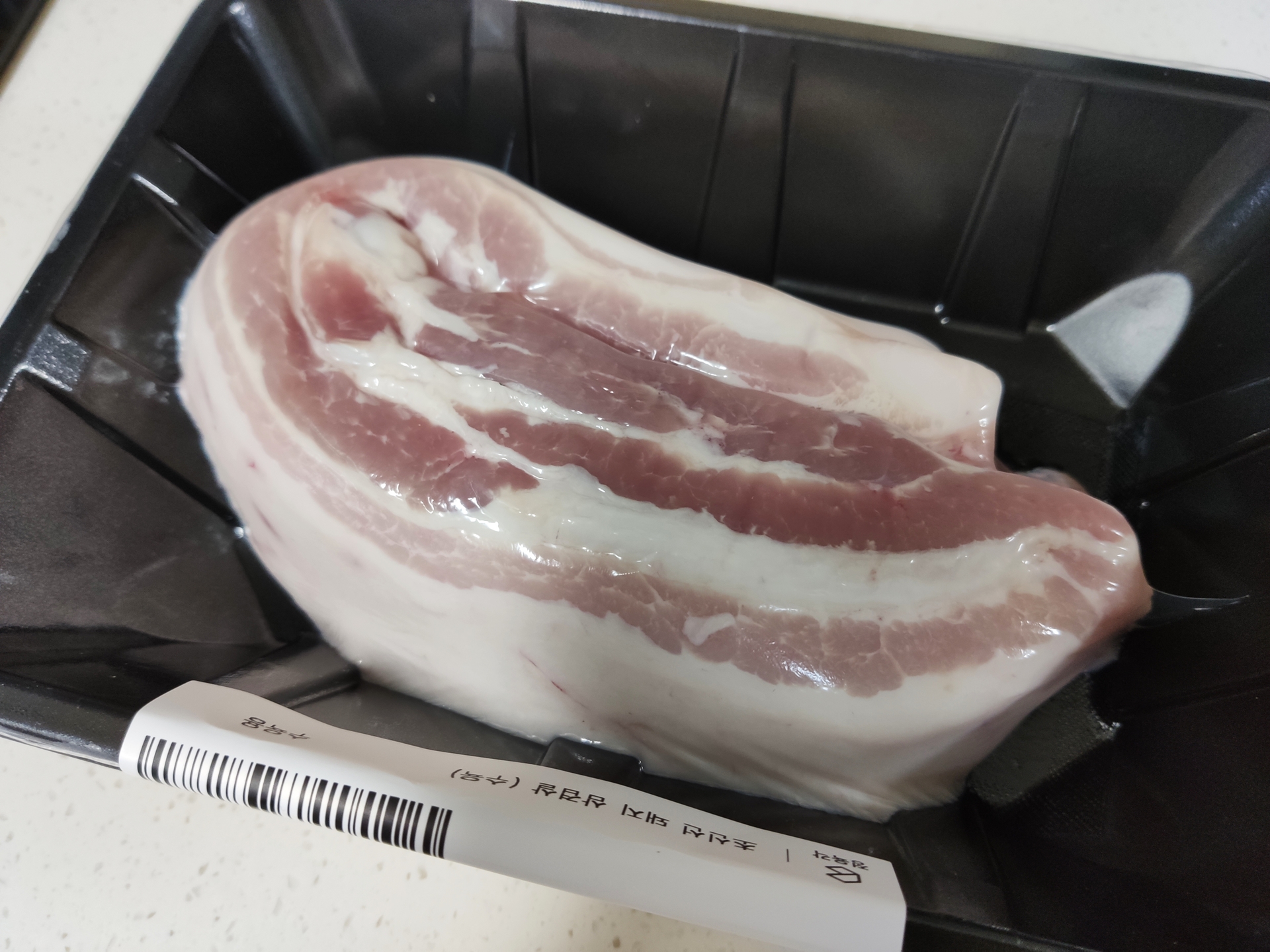 이거는 온라인몰 정육각 ( https://www.jeongyookgak.com/ ) 에서 사온 통돼지삼겹살인데요, 도축한지 며칠 안 된 고기를 파는 컨셉인데 고기도 괜찮고 3500원짜리 "신선플랜" 에 가입하면 한 달동안 4회 배송비가 무료라는 좋은 상술을 펼치고 있어서 애용하고 있습니다.