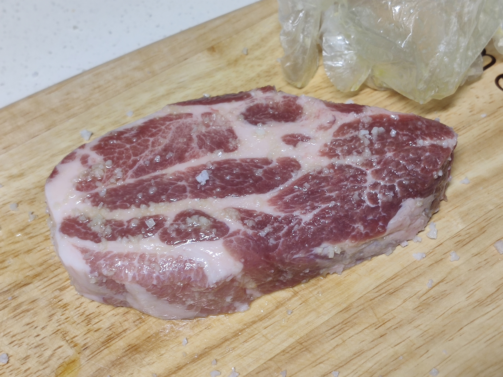 이거는 아까 그 동네 정육점에서 잘라온 목살 300g쯤입니다.