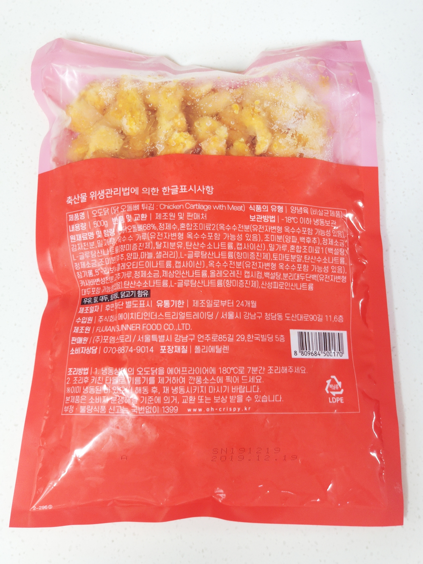 "오 크리스피" 라는 몰에서 산 "오도닭" 이란 제품인데요 에어프라이어용으로 최적화된 튀김 제품을 판다고 맥주 안주로 그만이라고 광고하는 걸 보고 사 보았는데 이걸 어디서 본 거냐면 카톡광고랑 페북광고...
