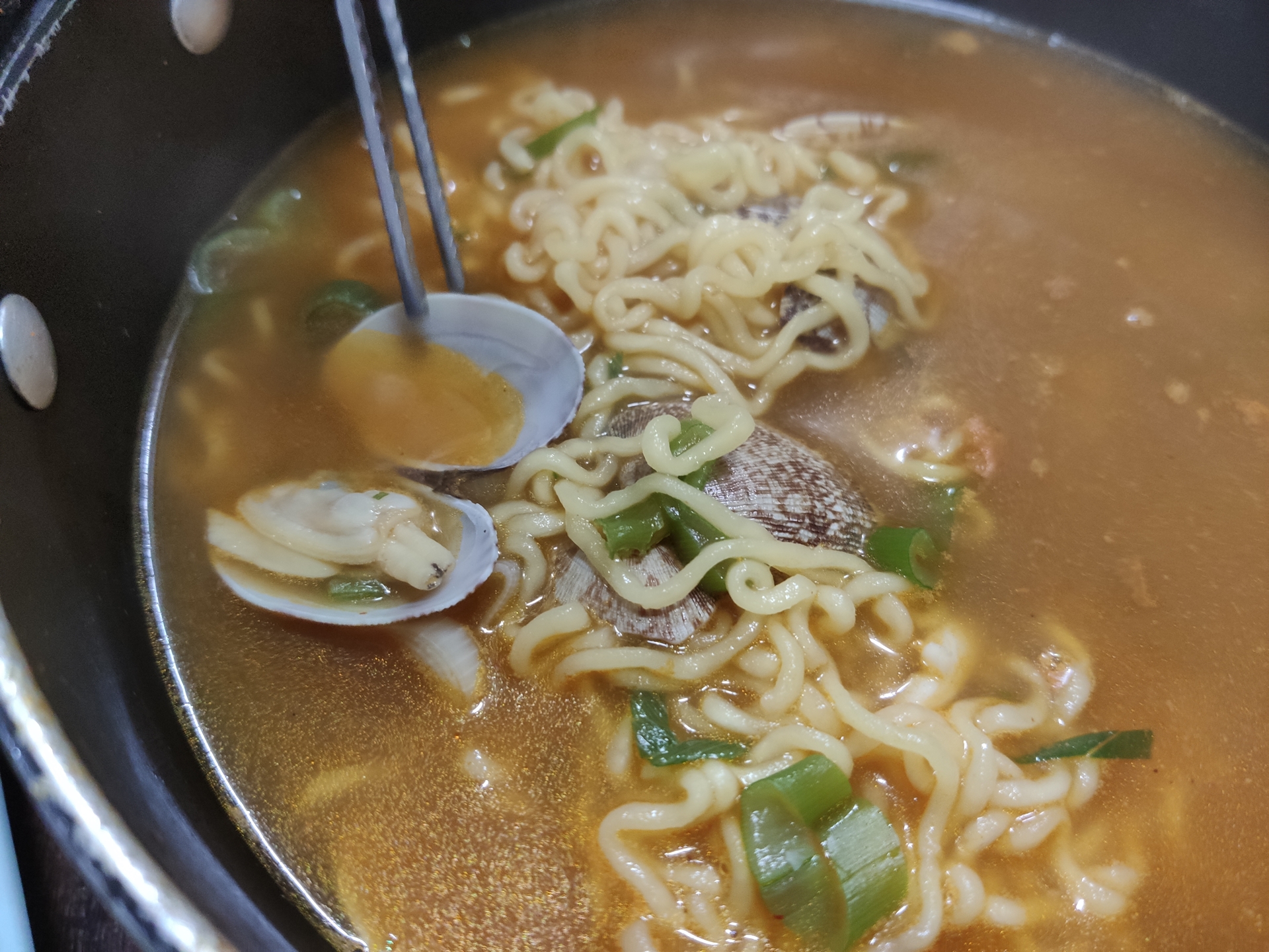 내사랑 msg덩어리 라면스프에 조개류까지 들어가 있으니 이것이 술을 부르는 국물이다.