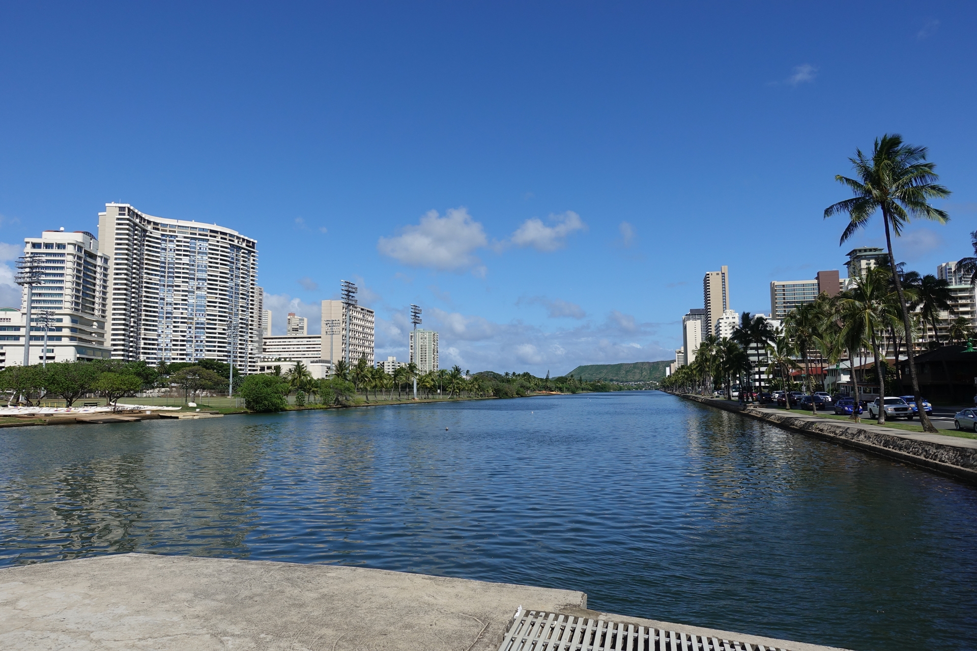 숙소에서 이제 버스를 타기 위해 Ala wai 운하를 횡단해서 지나가는 중입니다.