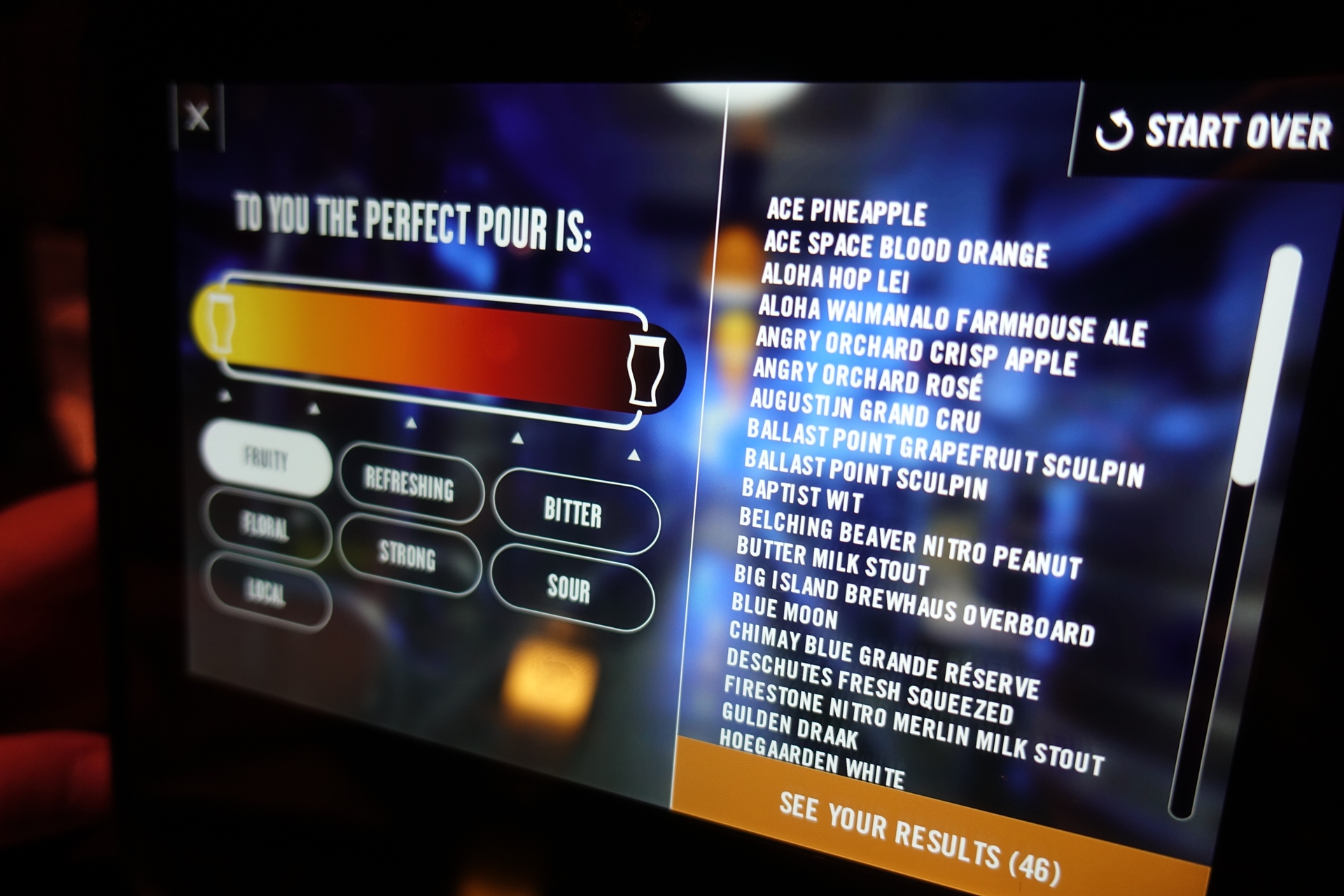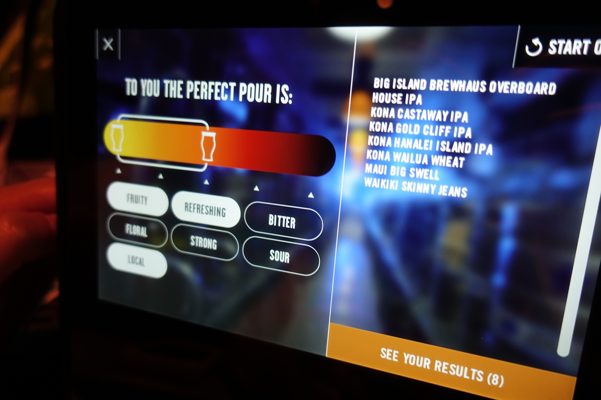수백가지의 맥주 중 취향과 강도를 설정하면 거기에 맞는 맥주들을 필터해 줍니다 ㅋㅋㅋ