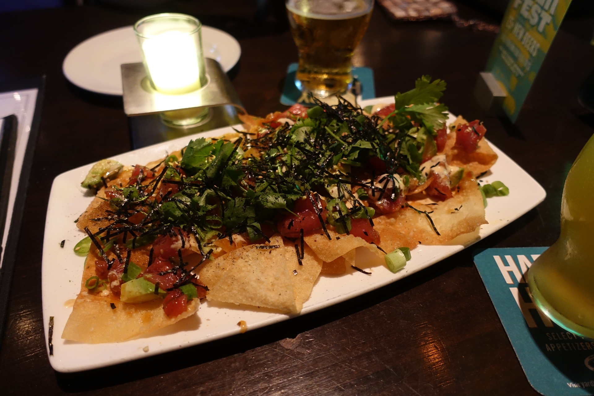다른 메뉴들은 평이 썩 좋지는 않은 것 같은데 바로 이 문제의 포케 나초는 오아후 섬에 오셨다면 여기가 아니더라도 다른 데에서라도 한 번쯤 드셔 보시면 좋을 것 같습니다. 하와이에서 먹었던 것 중에 가성비로는 이게 최고였던 것 같네요. 맥주도 취향에 맞는 게 하나는 있을 테니 함께 곁들이시면 좋을 것 같구요.