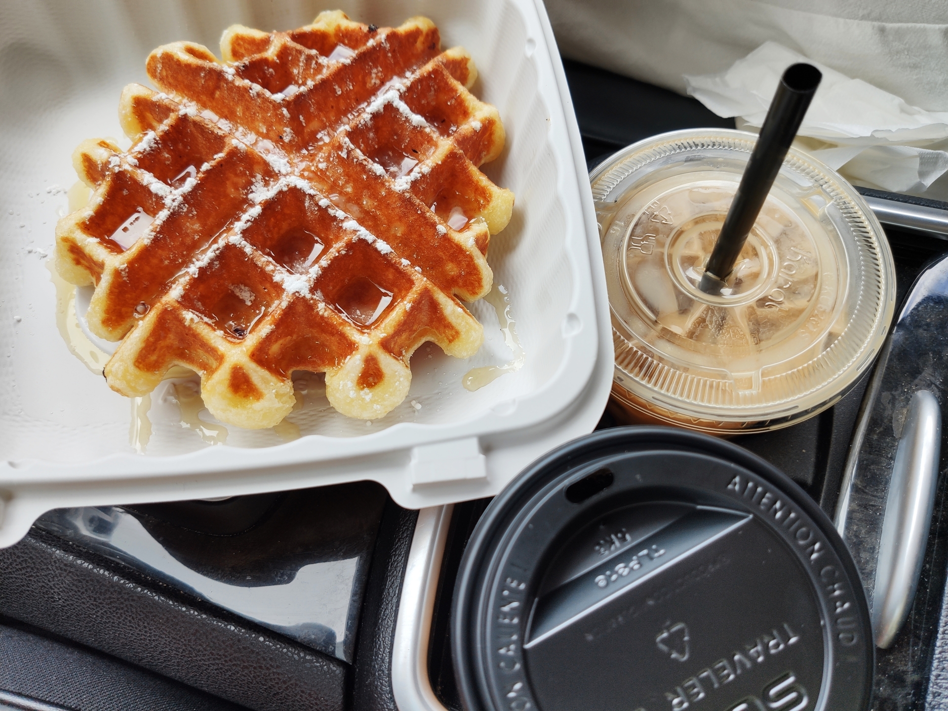 그것보다 무심하게 종이박스에 담겨있는 저 와플쪼가리가 단돈 $4 주제에 엄청 쫄깃하고 달고 씹는 맛까지 있는 아주 훌륭한 미국식 아침식사라 마음에 들었네요.