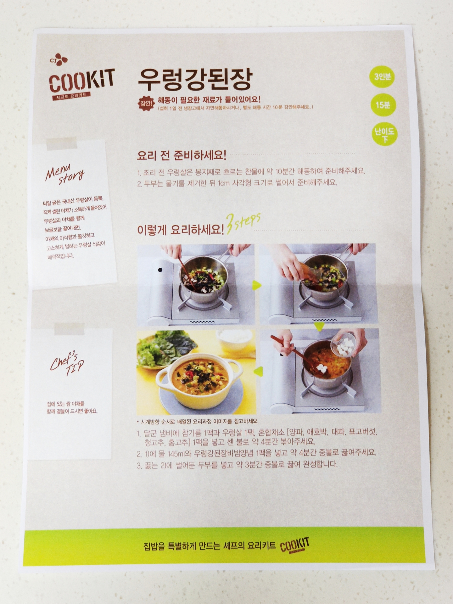 하지만 구성 자체가 좀 너무 ㅋㅋㅋ 재료 넣고 썰어만 주고 + 양념만 만들어 준 건데 이 정도면 마트 가서 재료 사고 "강된장양념" 사서 하면 되는 것 아닐까요...?