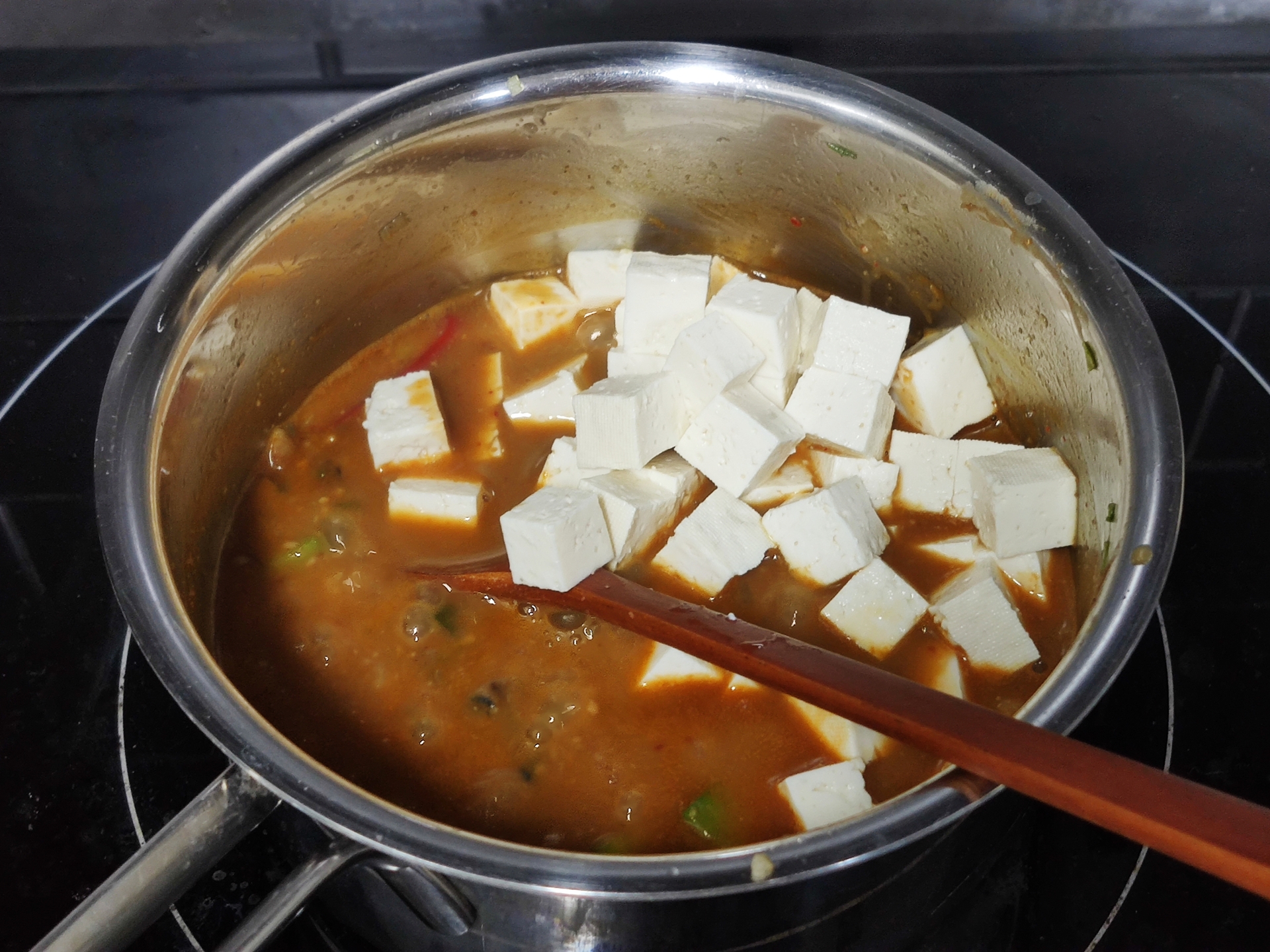 우렁이 해동하고 / 두부썰고 / 넣고 / 끓이고 / 끗