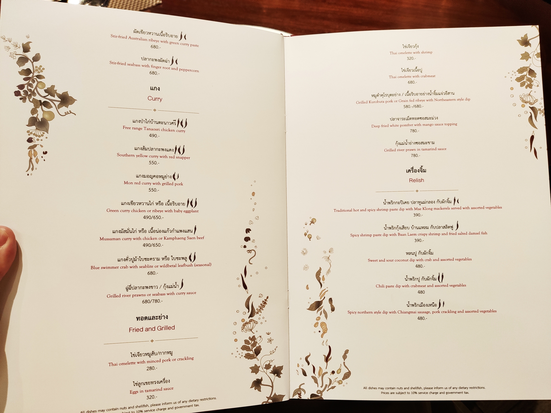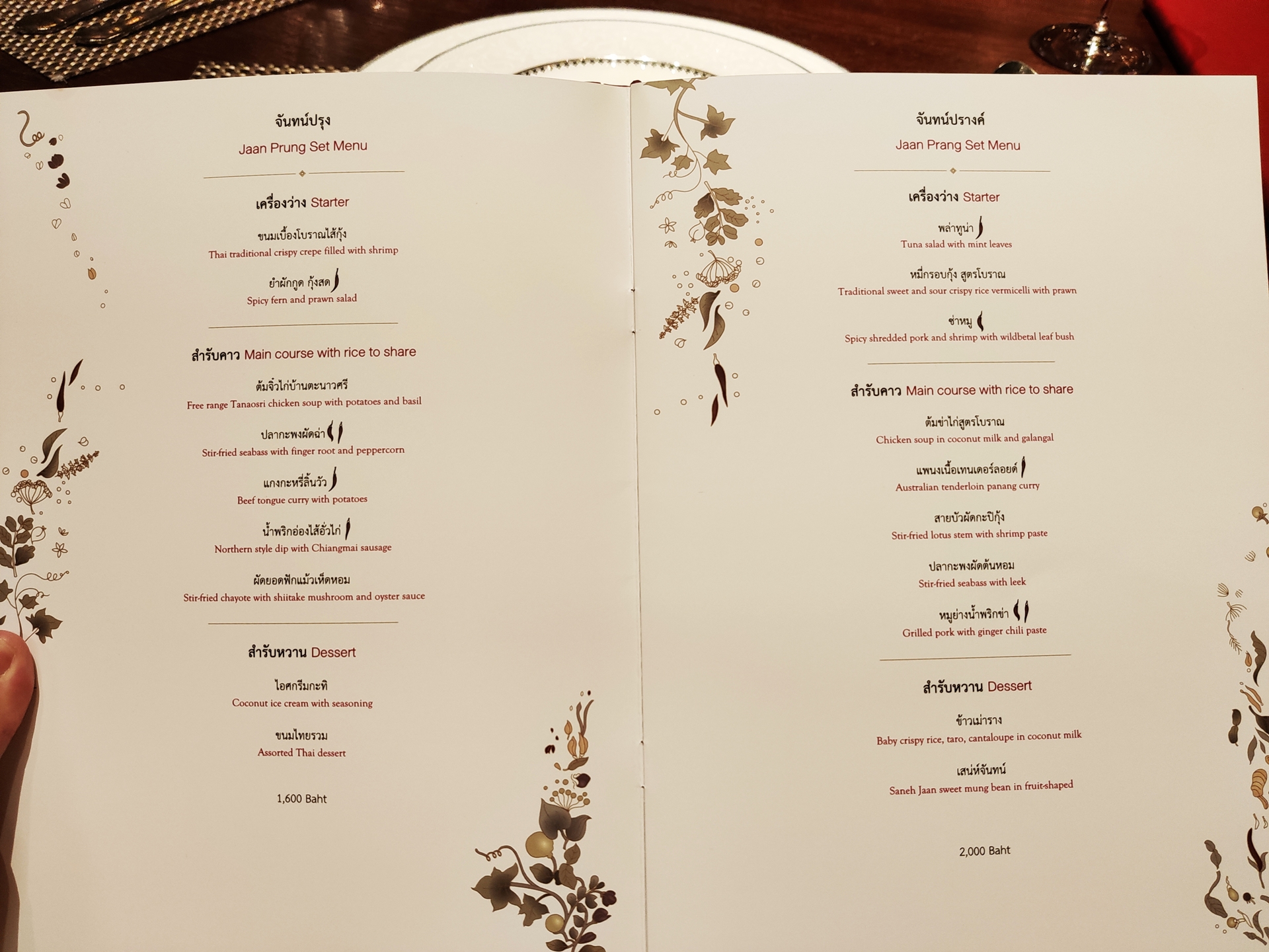 1,600바트, 2,000바트, 2,500바트짜리 3개의 코스 메뉴가 있었는데 왠지 이거 시키면 중간에 마누라가 잘 못 먹는 음식도 섞여있을 것 같고 선택의 자유도 없을 것 같아 단품들을 여러 개 시켜 먹는 것으로 대체하기로 했습니다.