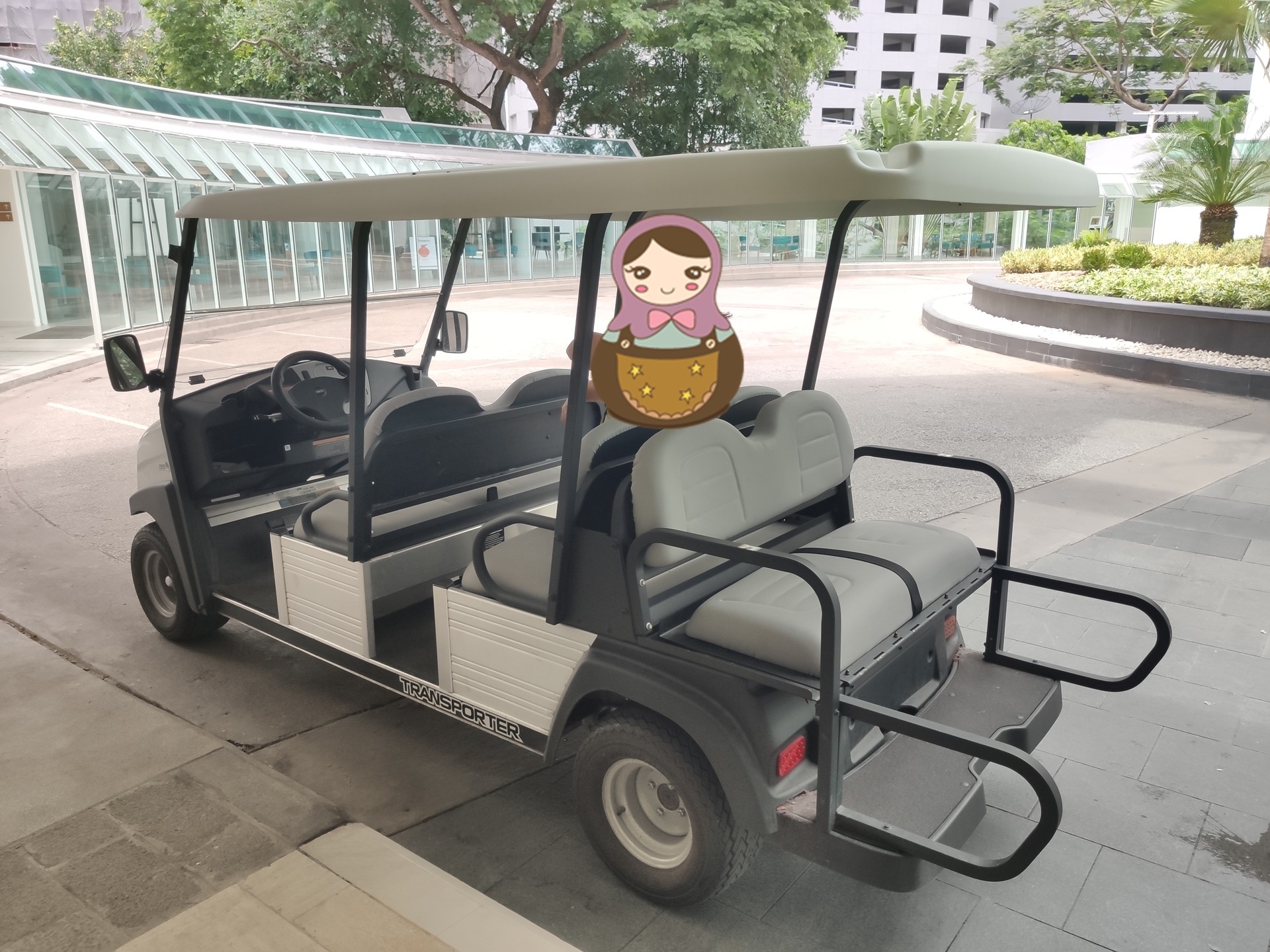 모벤픽 bdms 웰니스 리조트 호텔 정문은 애매한 2층에 있기 때문에 1층까지 걸어서 내려가려면 2분 30초 정도 걸리는데, 호텔 앞의 직원에게 얘기하면 이렇게 골프 카트를 태워줍니다.
