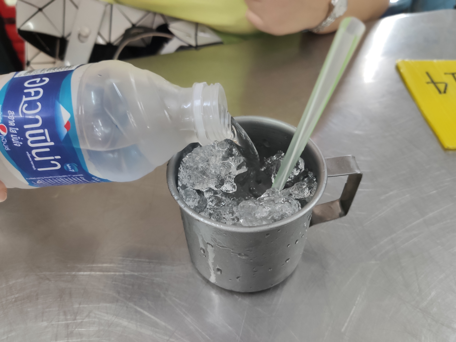 주문한 음식을 기다리는 동안 너모 더워서 물이랑 얼음을 시켰습니다.