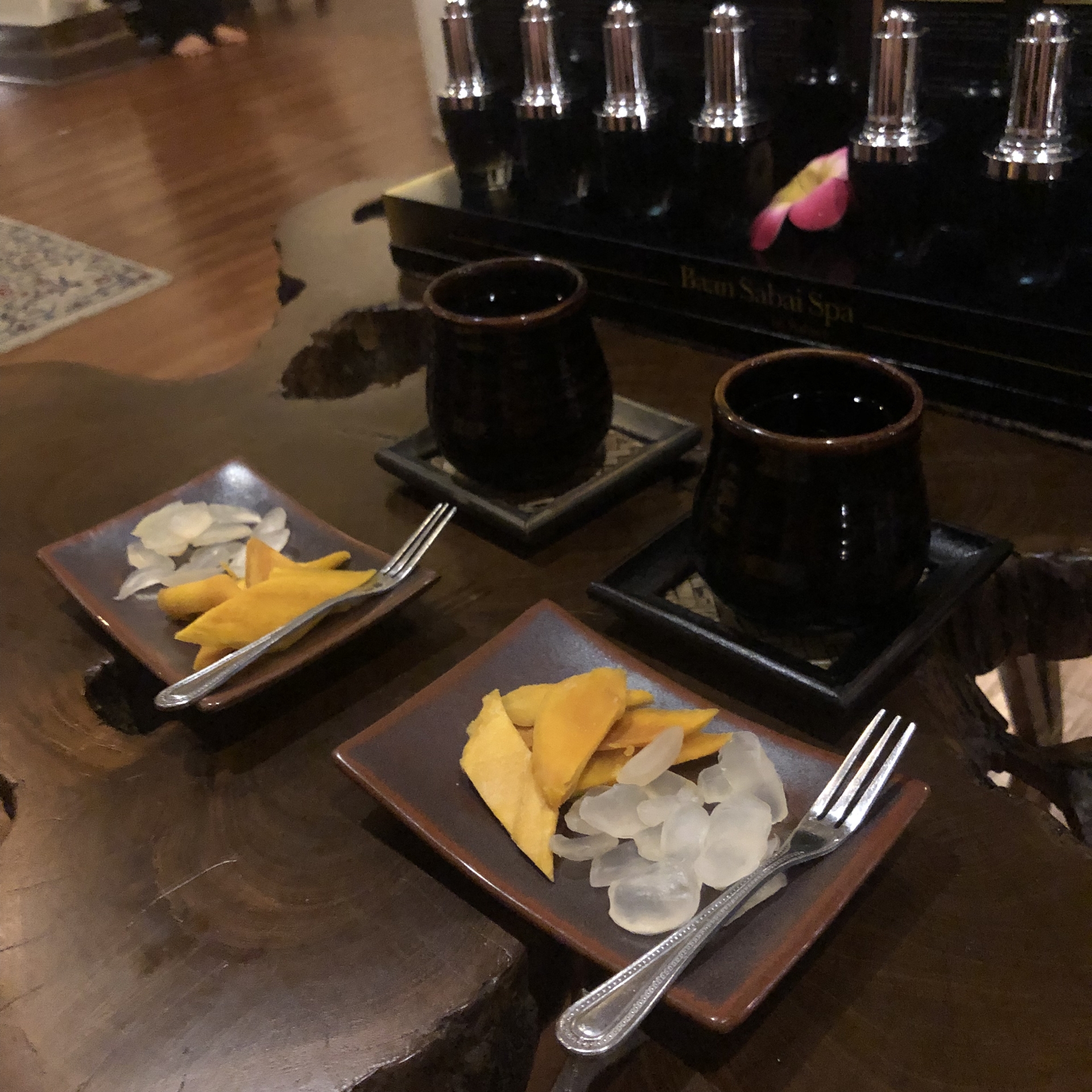 마사지를 받고 나오면 이렇게 차랑 주전부리를 준비해 줍니다. (맛없음)