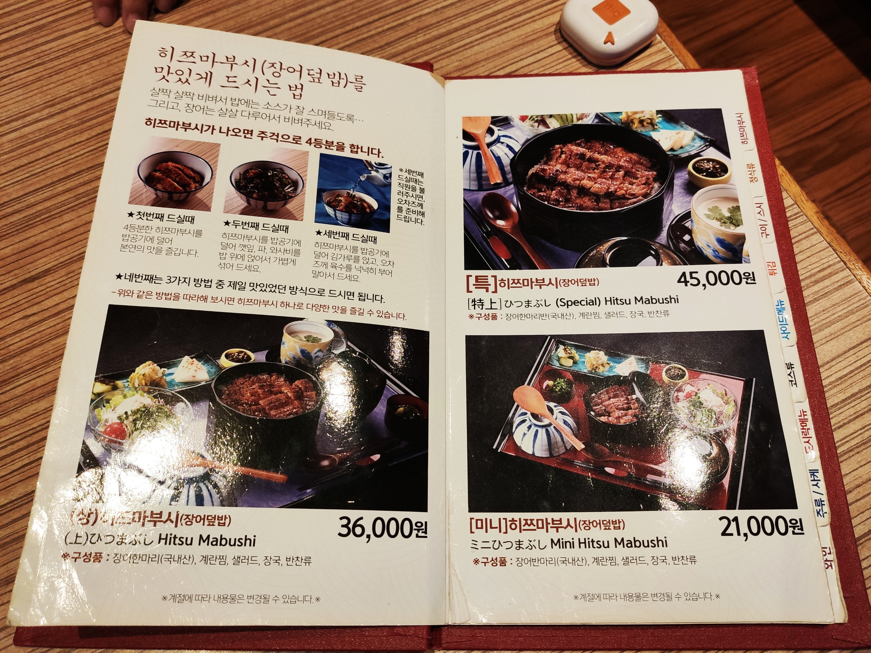 아니면 난 장어집이니 장어만 조지겠다는 마음을 먹고 특 히츠마부시를 시키면 4.5만원입니다.