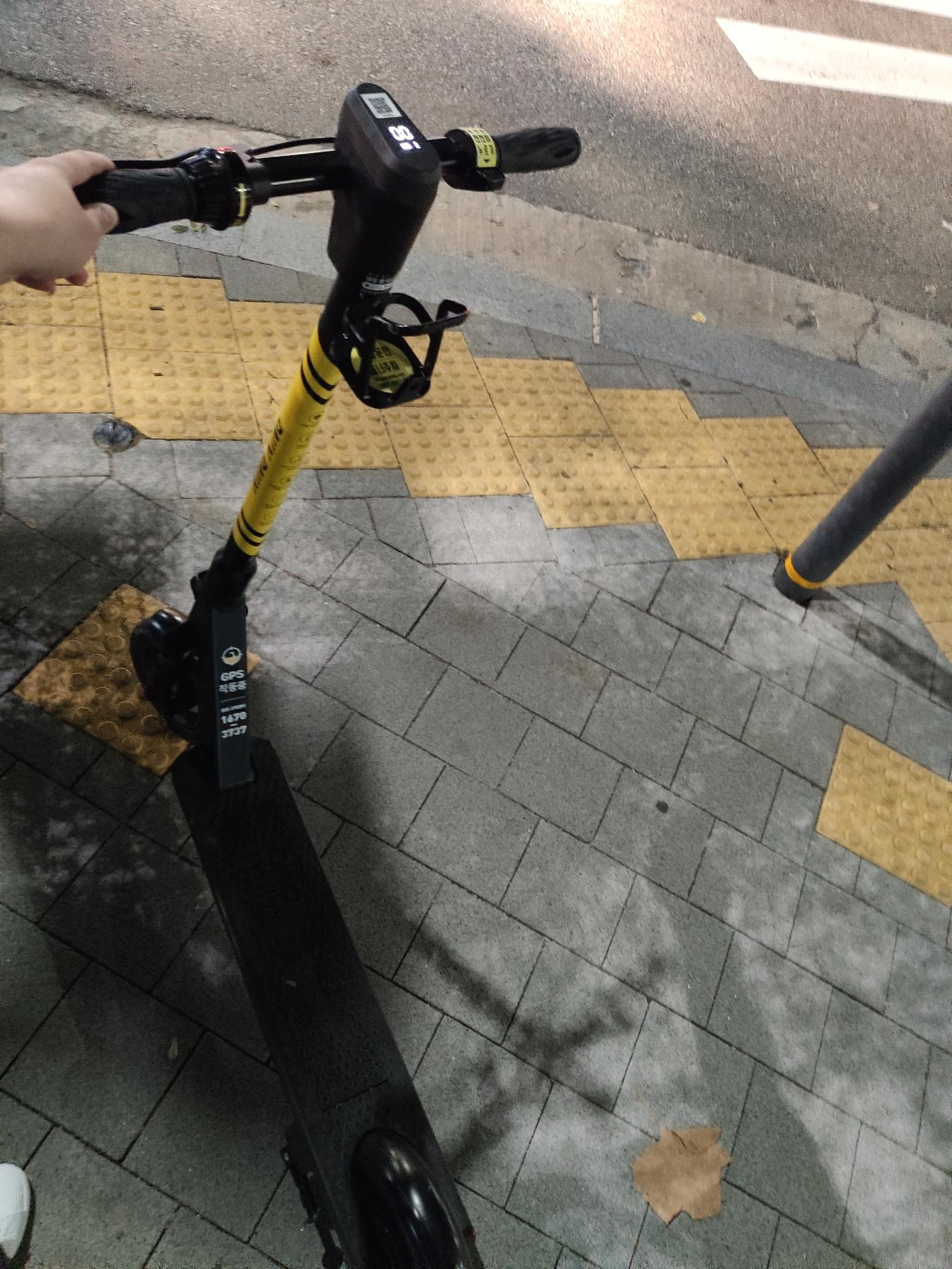 - 06:00~24:00에만 운영 - 정해진 곳 위주로 주차되어 있음 - 이용범위 협소하나 범위 외 킥보드도 대여 가능 - 대여는 되는데 안움직이고 돈만 나감 (?) - 잡는 핸드브레이크, 뒷바퀴 풋브레이크 |