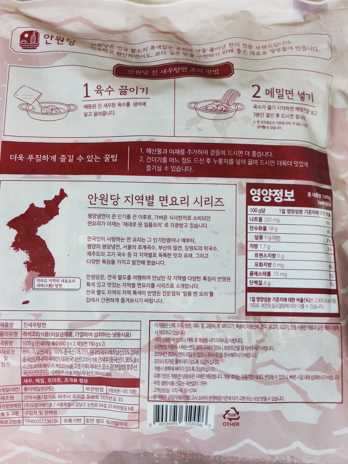 마켓컬리 누들행사 할 때 샀었던 안원당 진새우탕면입니다.