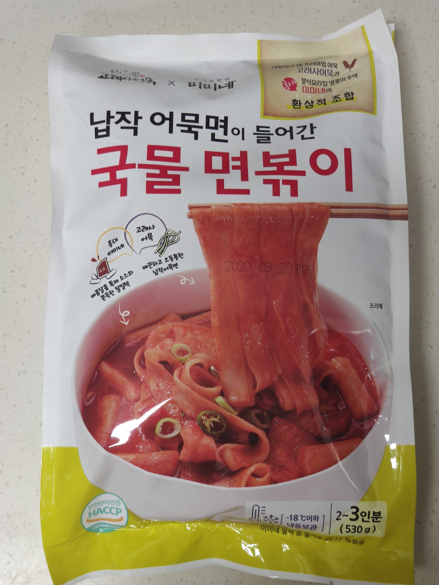 롯데슈퍼에서 사 온 "납작 어묵면이 들어간 국물 면볶이" 입니다.