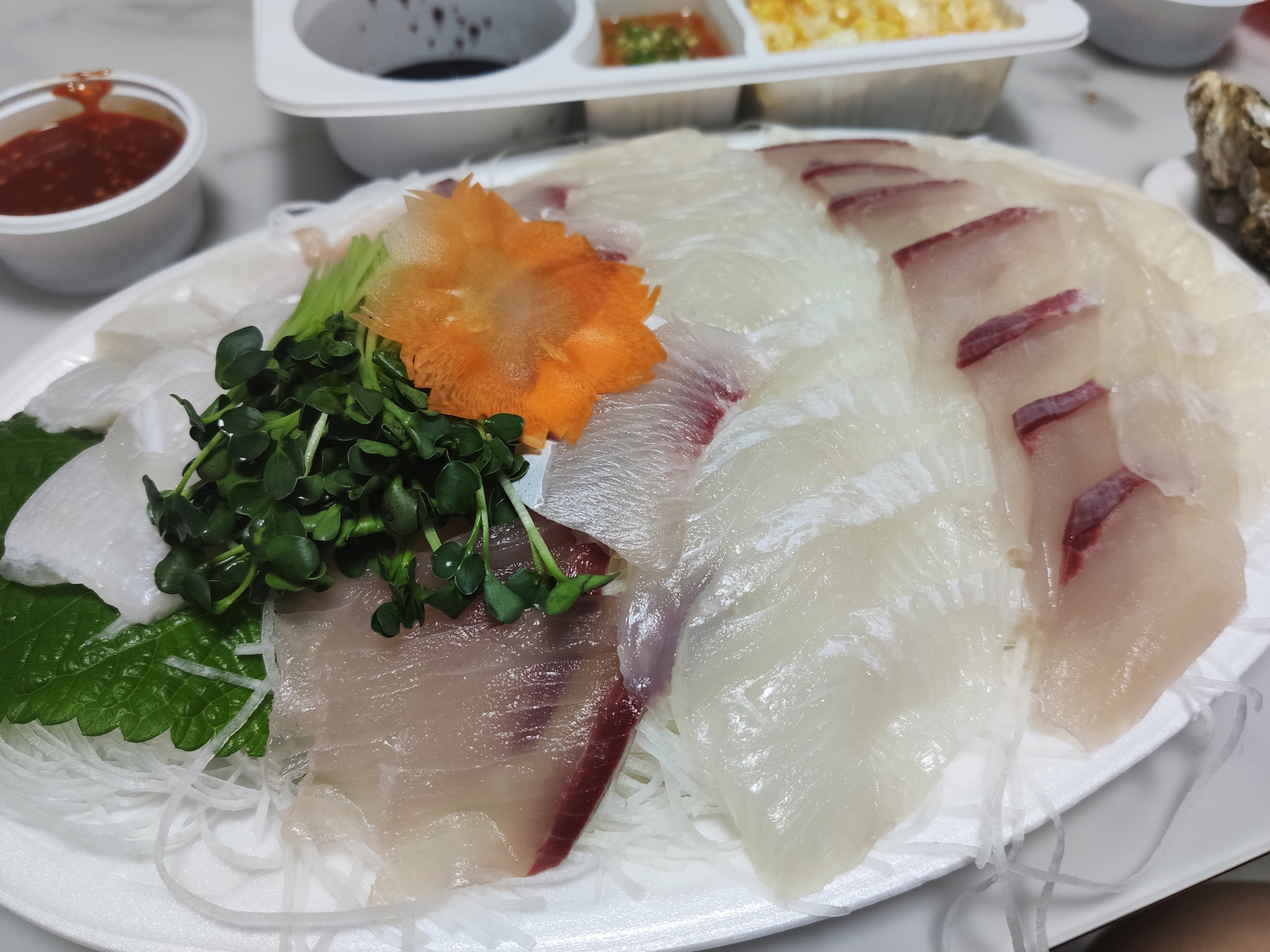 4만 8천원짜리 양인가 하면 잘 모르겠지만 가격 빼고 생각해보면 당일 남해에서 뜬 맛있는 회를 받아먹는다는 거니까 나쁘지 않은 것 같음.