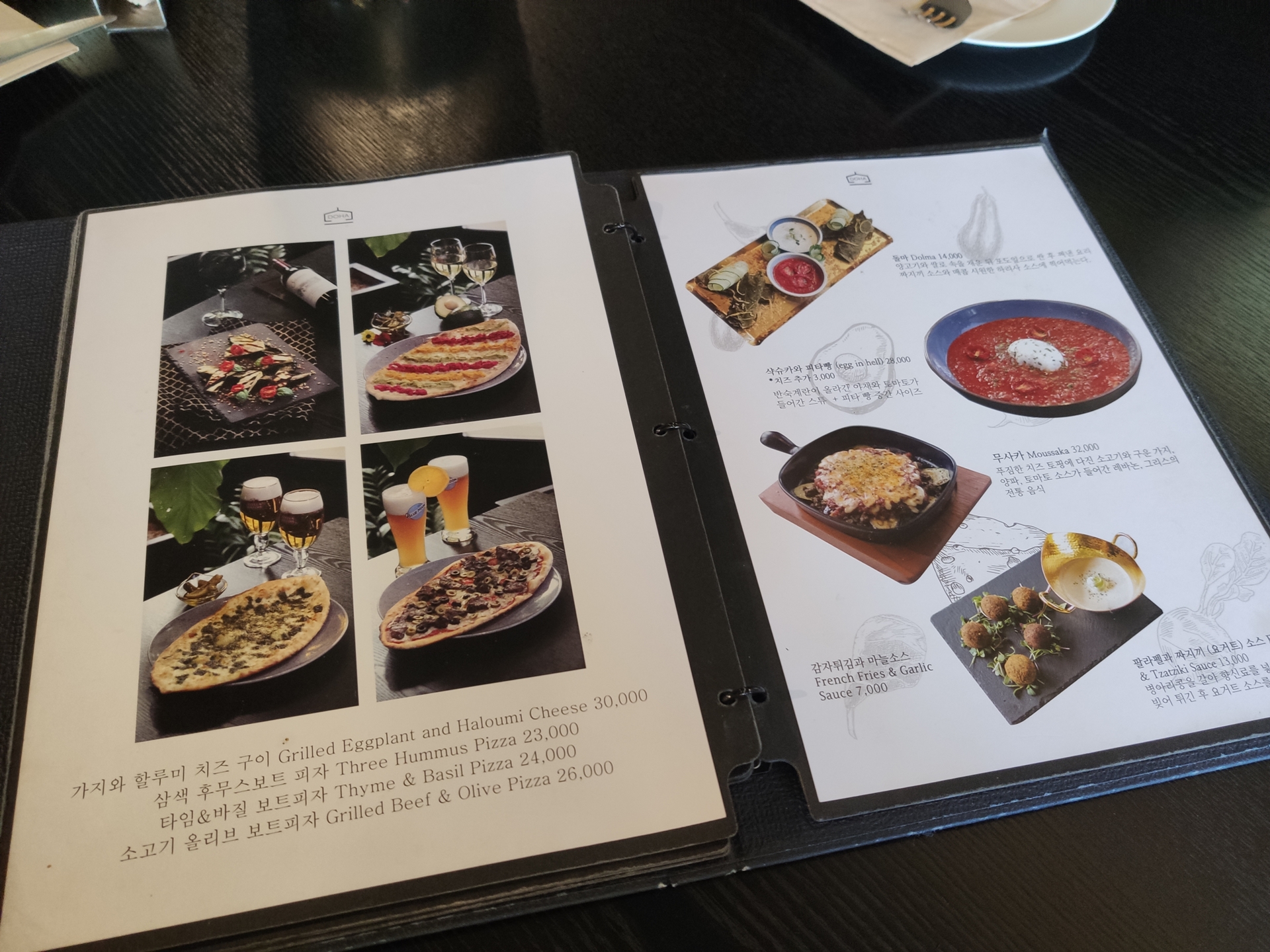그 외에 시키지는 않았습니다만 여러 종류의 중동식 같아 보이는 피자🍕 메뉴도 있고, 돌마? 무사카? 같은 제가 처음 들어보는 요리도 있고, 사진에는 찍혀 있지 않지만 모로코식 스튜라는 "타진"🍲 도 있고, 차지키 소스와 곁들여 먹을 수 있는 팔라펠도 있습니다. 그리스식의 차지키 소스는 먹어는 보고 싶지만 오이🥒가 들어가는 메뉴라 저는 먹을 수가 읍네요 -.-