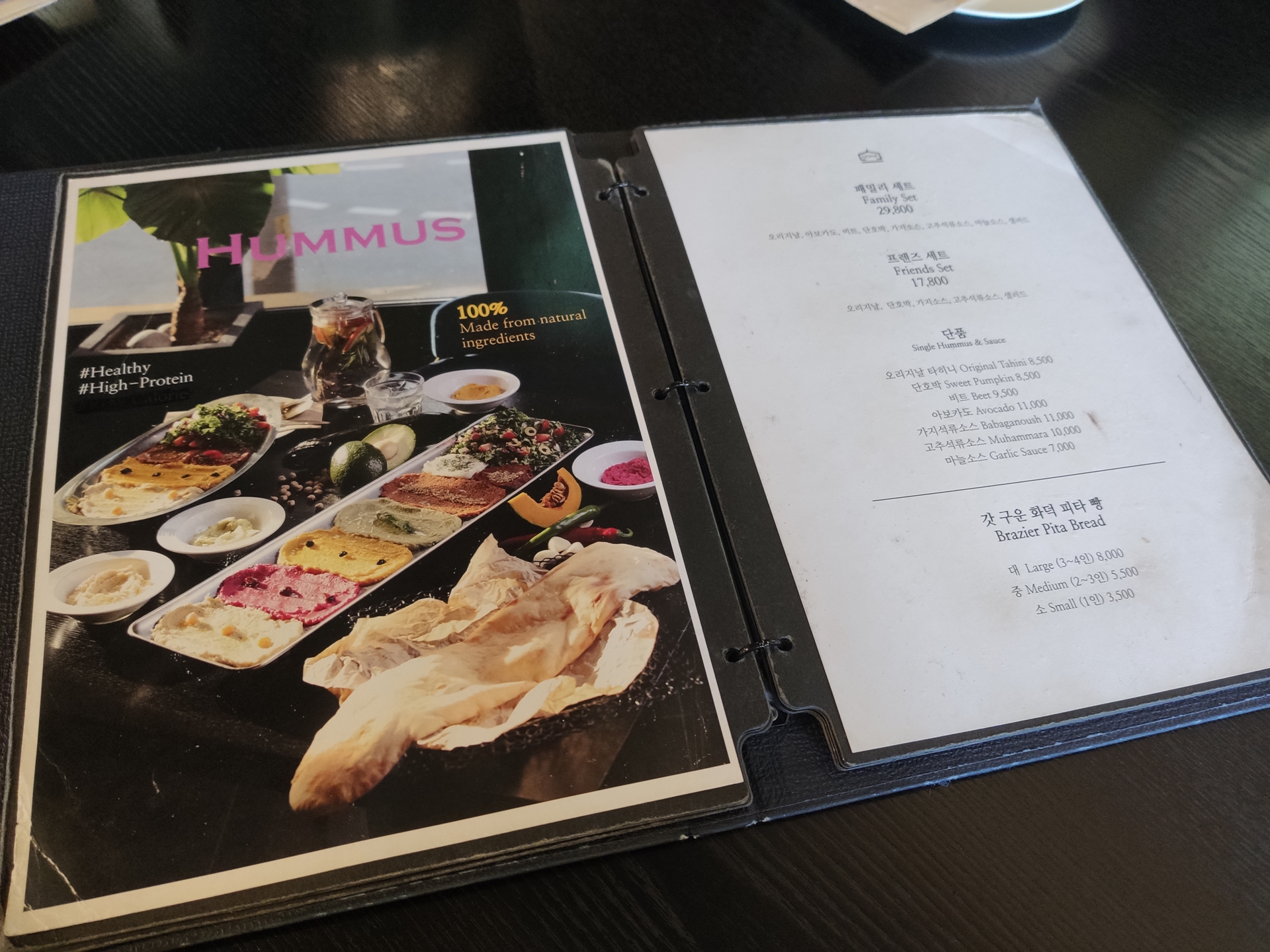 단품 주문도 가능합니다만 가격과 양과 여러 가지를 맛본다는 점도 감안하여 프렌즈 세트를 주문하고, 후무스에 곁들여 먹을 피타빵 라지를 하나 시켰습니다.